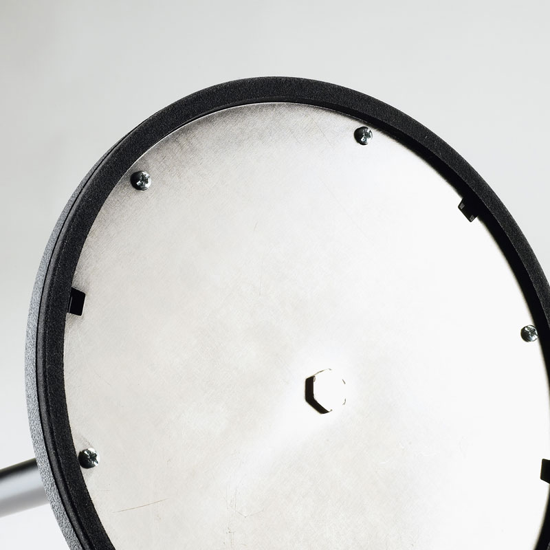 稳定、轻巧的金属圆形底座,带塑料盖;全圆防振橡胶阻尼圈,用于过滤噪音;大支撑面积提供很大的稳定性