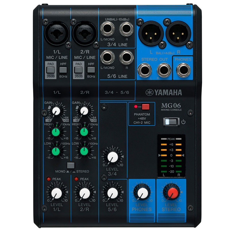 YAMAHA MG06 "2个话筒 / 6个线路输入 (2个单声道 + 2个立体声)